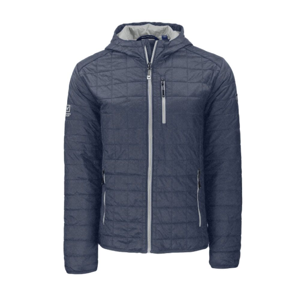 Stay warm and sustainable with this eye-catching men's full-zip jacket. Its lightweight, recycled down-alternative insulation (70% recycled polyester) provides exceptional warmth without the bulk, making it perfect for a variety of outdoor activities. The wind and water-resistant 100% recycled nylon shell ensures you're protected from the elements, while the insulated hood offers added comfort. With its packable design and eco-friendly materials, this stylish giveaway is the ultimate choice for the conscious adventurer. Wirtgen Group logo embroidered on the right bicep and includes a custom Wirtgen zipper pull.